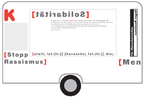 Der «Stopp-Rassismus-Kiosk» bietet auch eine ideale Möglichkeit, eigene Anliegen an die Frau und den Mann zu bringen. Die Juko bietet nebst der Vermietung des Wagens Unterstützung bei der Planung und Durchführung einer Aktion mit dem Kiosk an. Hierfür hat die Juko speziell für die Mieter/innen des Kiosks ein Handbuch entwickelt, welches nebst thematischen Hintergründen viele Tipps und Anregungen für eine erfolgreiche Aktion beinhaltet.